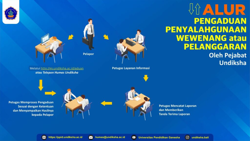 Sebagai bagian dari komitmen Universitas Pendidikan Ganesha (Undiksha) dalam menerapkan tata kelola yang transparan dan akuntabel, kami menyediakan mekanisme pengaduan bagi seluruh civitas akademika dan masyarakat umum terkait wewenang dan tindakan pejabat di lingkungan kampus. Laman ini dirancang untuk memudahkan proses pengaduan, memastikan setiap laporan diterima, ditinjau, dan ditindaklanjuti secara profesional sesuai dengan peraturan yang berlaku. Kami menjamin kerahasiaan identitas pelapor serta menjaga integritas proses pengaduan demi terwujudnya lingkungan kampus yang bersih, profesional, dan berintegritas.