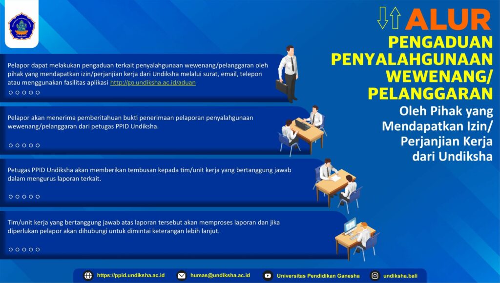 Setiap laporan yang masuk akan diproses secara objektif melalui tahapan penerimaan laporan, verifikasi, klarifikasi, hingga penyelesaian sesuai ketentuan yang berlaku. Dengan mekanisme ini, Undiksha memastikan bahwa hak dan kewajiban para pihak dalam perjanjian kerja tetap terjaga, serta menciptakan iklim kerja yang adil, harmonis, dan profesional.